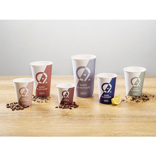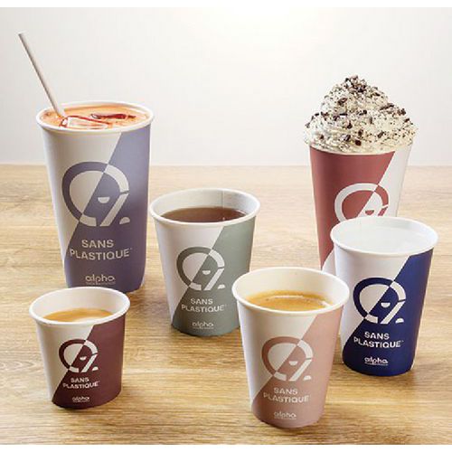 - Gobelet en carton Alpha, adapté à toutes sortes de boissons, chaudes ou froides, sauf alcool fort.