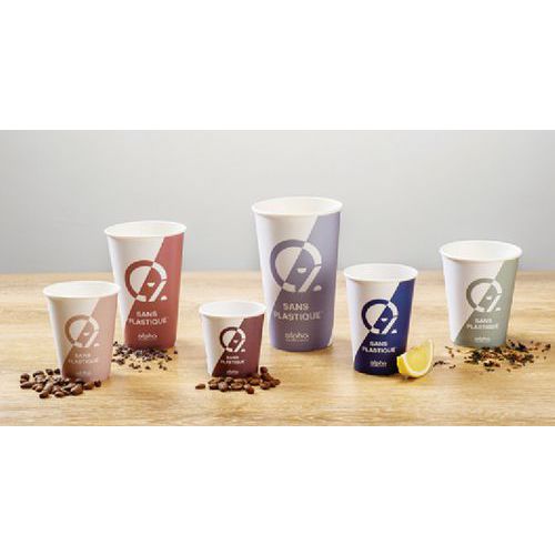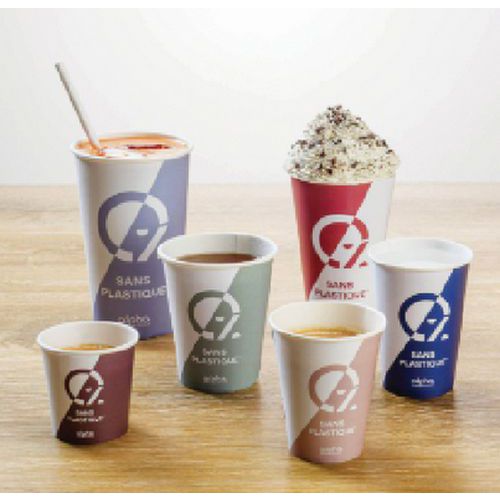 - Gobelet en carton Alpha, adapté à toutes sortes de boissons, chaudes ou froides, sauf alcool fort.
