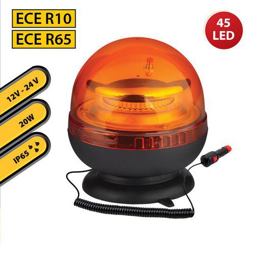 Gyrophare LED 12/24V avec clignotant LED qui émet une lumière puissante à 360 degrés, 2 modes de clignotement différents et 45 LED haute intensité.