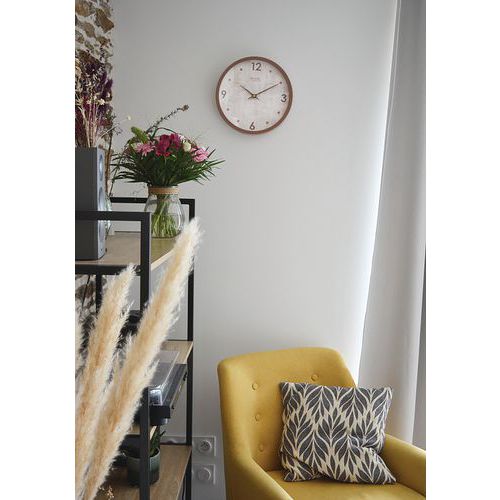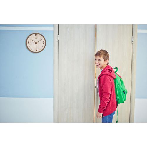 Horloge Eco-conçue Naturalis cappuccino. Mouvement silencieux pour assurer calme et concentration dans vos espaces de travail. Design élégant , elle s'intègre harmonieusement dans n'importe quel espace. Ajoute une touche contemporaine tout en respectant le bien-être de votre environnement.