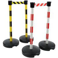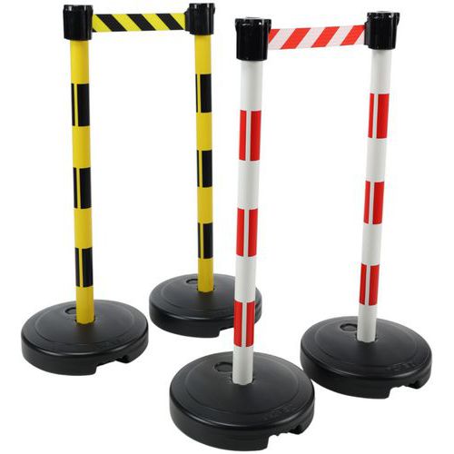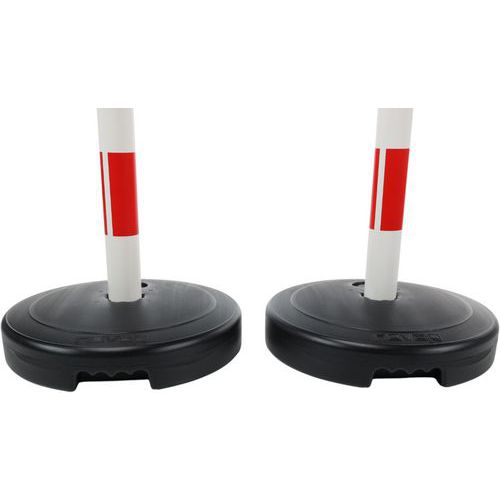 Poteaux à lester sur socle à sangle étirable. Socle à lester jusqu'à 9 kg. La tête réceptrice peut recevoir jusqu'à 3 sangles. Convient à un usage extérieur.