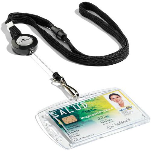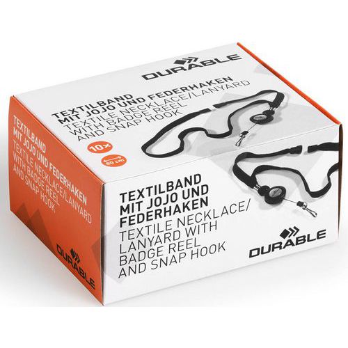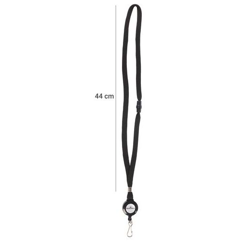 | Intitulé du produit | Lacet textile avec enrouleur et attache mousqueton - Durable, Coloris: Noir, Longueurs: 801 mm |
