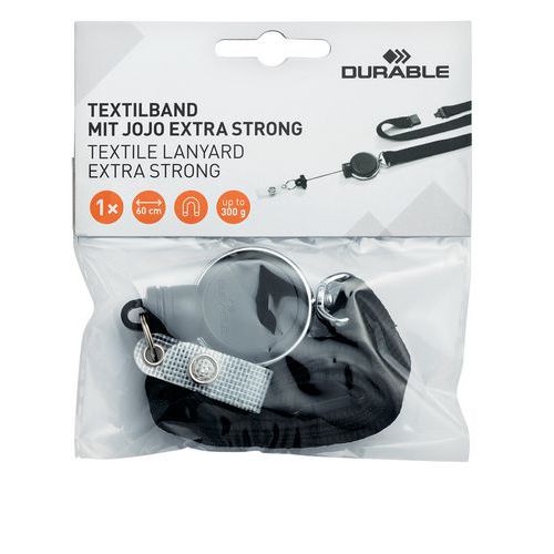 | Intitulé du produit | Lacet textile avec enrouleur pour badge extra résistant, Coloris: Noir, Longueur: 120 mm, Largeur: 110 mm |