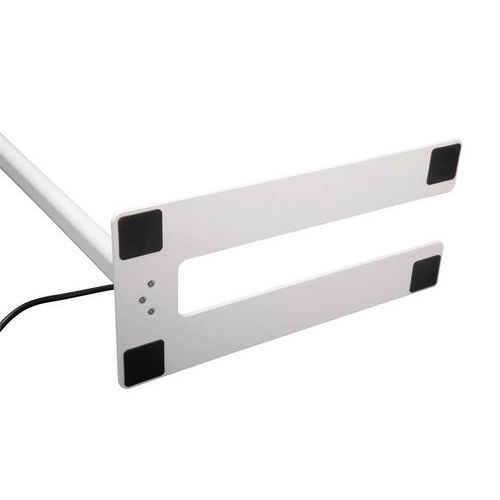- Pas encombrant: socle découpé pouvant se positionner autour du pied du bureau.
