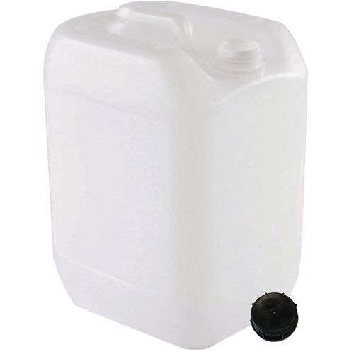 Jerrican plastique homologué pour le transport de marchandises. Haute résistance aux chutes, à la pression hydraulique et au gerbage. Emballage d'étanchéïté parfaite : résultat d'épreuve au test de pression d'air. Jerrican de portage et manutention de grand confort avec poignée supérieure. Grande ouverture avec bouchon à vis, articulé et indicateur d'ouverture.