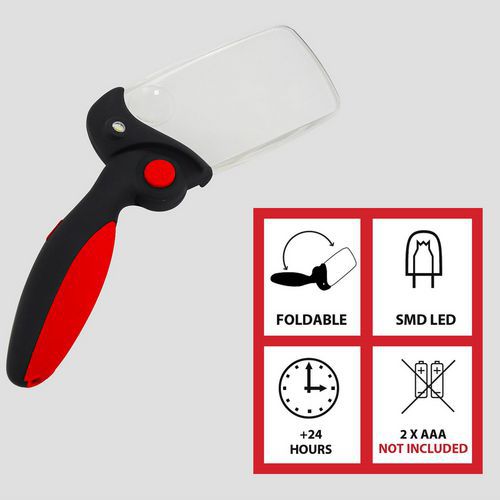 Loupe x6 avec éclairage LED Velamp dotée d'une poignée pliable.