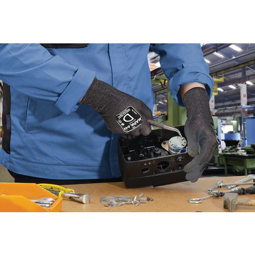 - Gant tricoté sans couture pour un confort maximum, une bonne dextérité et souplesse avec une protection coupure élevée (Niveau D).