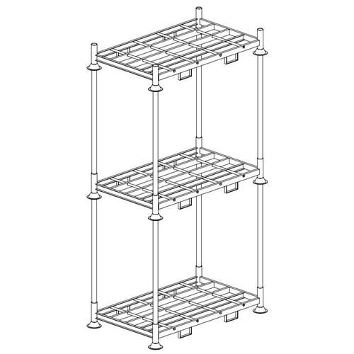 Le Manurack double 2 niveaux est composé de 2 bases Manurack double 1240 x 1990 mm et de 4 tubes longueur 1050 mm ou 1680 mm ou 2100 mm. Le Manurack double 3 niveaux est composé de 3 bases Manurack double 1240 x 1990 mm et de 8 tubes longueur 1050 mm ou 1680 mm ou 2100 mm. Le Manurack double 4 niveaux est composé de 4 bases Manurack double 1240 x 1990 mm et de 12 tubes longueur 1050 mm ou 1680 mm ou 2100 mm.