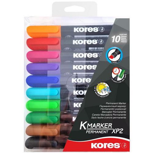 Marqueur permanent- Assortiment de 10, Encre coloris: Assorti, Rechargeable: non, Rétractable: non