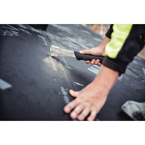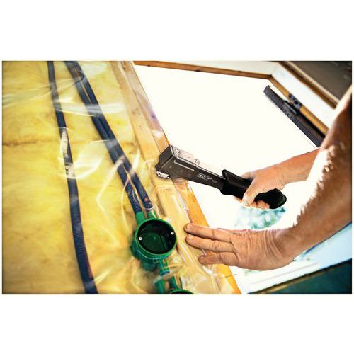 - Mécanisme de chargement rapide. Large plaque de protection pour préserver le matériau agrafé.