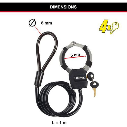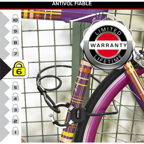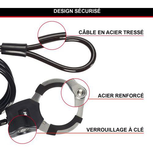 - Menottes antivol Street Cuff ™, câble en acier tressé 1m x Ø 8 mm avec menotte de couleur noire.