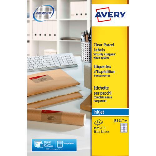 | Intitulé du produit | Mini étiquette transparente 38,1 x 21,2 mm, Nb d'étiquettes/planche: 65, Nb d'étiquettes: 1625 |