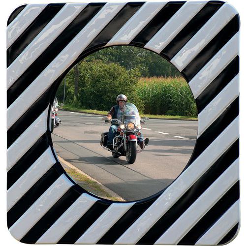 Miroir routier pour améliorer la sécurité et réduire les dangers dans les zones potentiellement dangereuses, cadre blanche/noir conforme à l'arrêté du 21/09/1981.