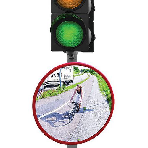 Miroir routier permettant aux automobilistes de voir les cyclistes dans les angles morts. Excellent retour d'image sans déformation. Bord rouge pour attirer l'attention des automobilistes. Garantie 10 ans sur la résistance aux UV. Disponible en modèle avec thermostat électronique intégré afin de prévenir de la formation gel.