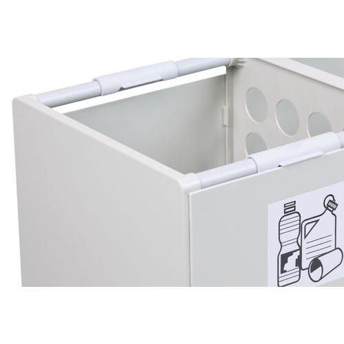 Module de recyclage en plastique adapté au tri sélectif des déchets. Personnalisez la capacité selon vos besoins grâce aux modules 1, 2, 3 ou 4 de 60 L chacun. Optimisez l’organisation de votre espace avec une installation flexible et évolutive. Favorisez un environnement propre et professionnel avec un design moderne et discret. Facilitez le tri grâce aux pictogrammes autocollants fournis pour chaque module.