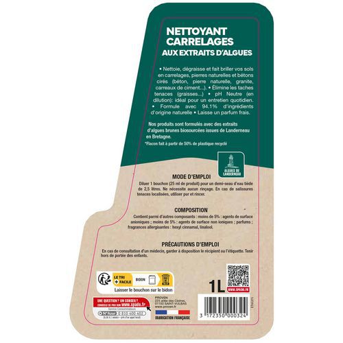 | Intitulé du produit | Nettoyant carrelages aux extraits d'algues 1L- Spado, Produit désinfectant: non |