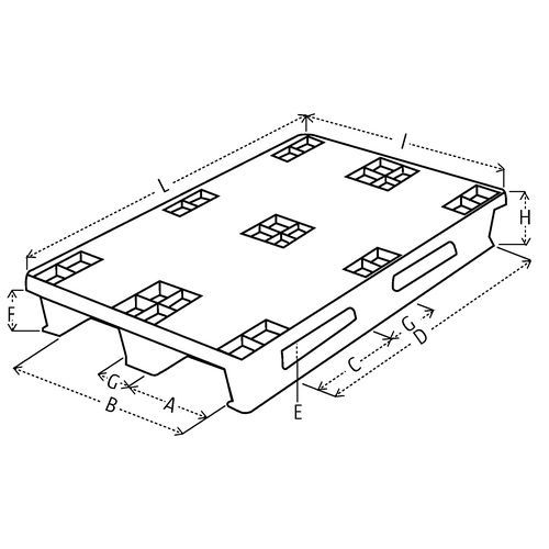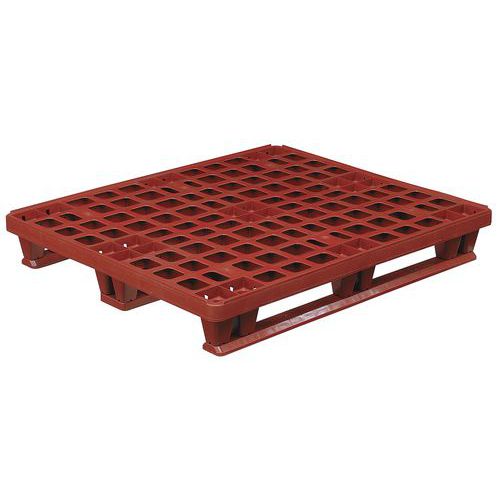 Palette plastique de dimensions standard pour transport, stockage et manutention.