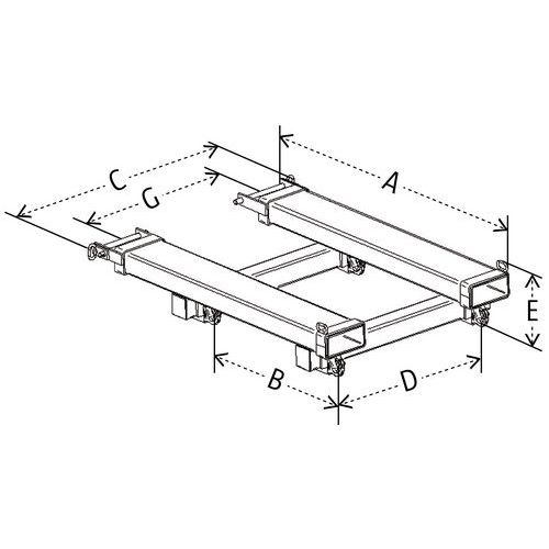 Modèle 2 : Prise fourche pour un montage direct sur les fourches du chariot élévateur avec système de verrouillage aux talons.