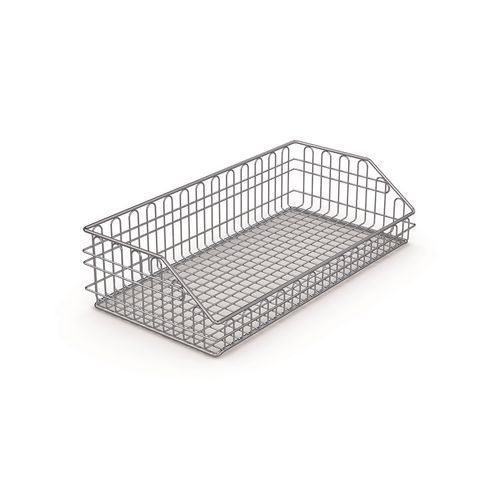 Panier de stérilisation inox de belle finition en fil continu. Qualité irréprochable : sans risque de déchirement du papier. Circulation de l'agent stérilisant facilitée grâce aux mailles larges. Préhension aisée avec ouverture sur côtés, échancrure sur face avant. Panier empilable, adaptable tous supports, accrochable aussi par le fond.