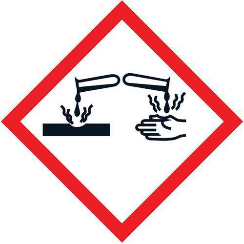 - Indiquez la présence de matières corrosives pouvant porter atteinte aux tissus vivants ainsi qu'aux métaux graâce à ce panneau.