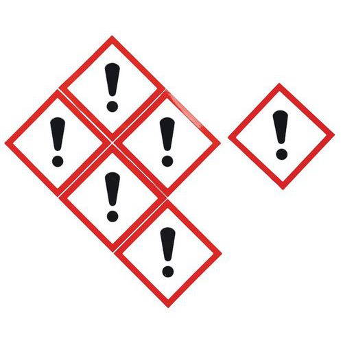 Panneau CLP permettant d'identifier les matières dangereuses contenues dans vos fûts, flacons, cartons et autres contenant, afin d'inciter les personnes impliquées dans leur manipulation à effectuer les bons gestes.