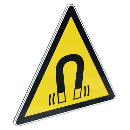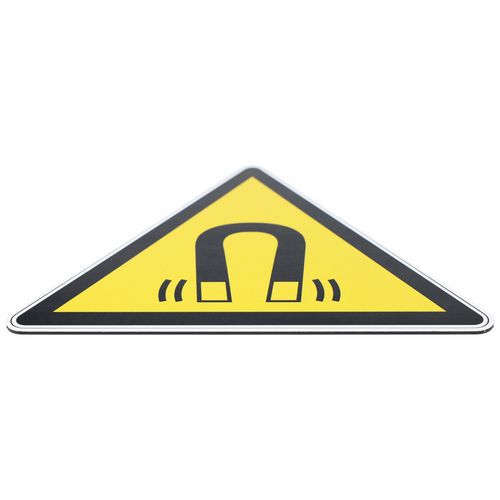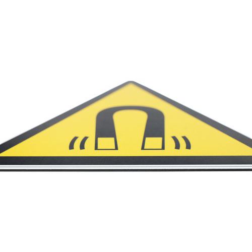Ce panneau de signalisation avec pictogramme indique la présence d'un champ magnétique, et par la même occasion signale qu'il faut faire preuve de précautions.
