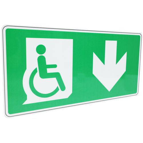 Panneau Sortie handicapés flèche bas aluminium - Manutan Expert