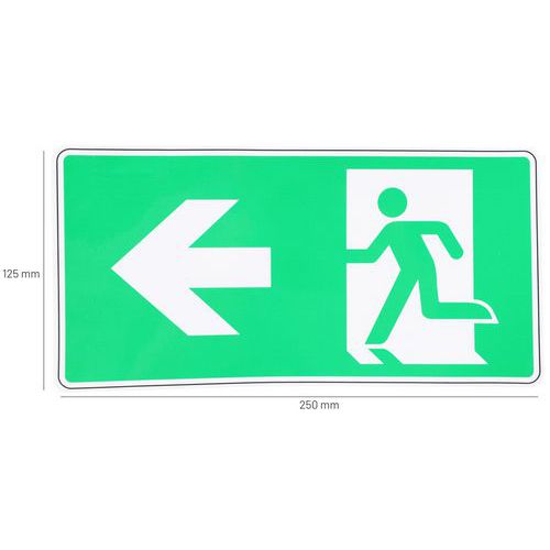 | Intitulé du produit | Panneau sortie secours flèche gauche adhésif, Adhésif: oui, Rigide: non, Panneau forme: Rectangle |