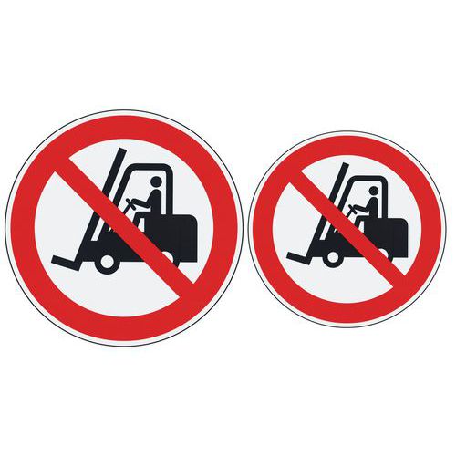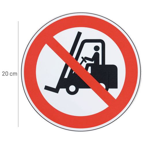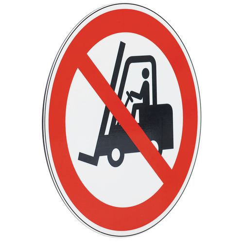 Organisez les zones piétonnes et d'engins de manutention à l'aide de ce panneau d'interdiction de circulation avec pictogramme des chariots élévateurs à fourches.