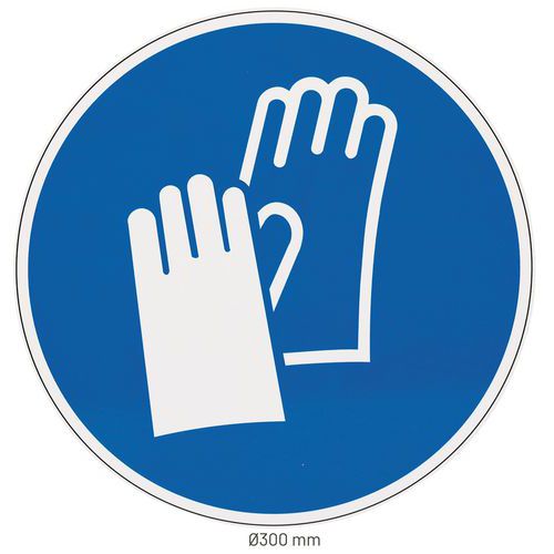 - Panneau d'obligation de porter des gants de protection afin de garantir une sécurité optimale.