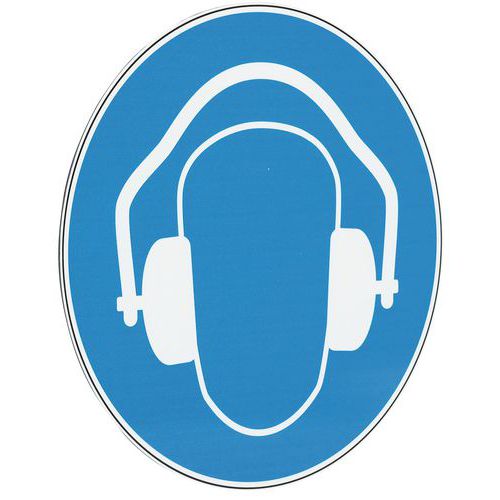 - Panneau avec pictogramme compréhensible par tous: Obligation de porter une protection auditive.