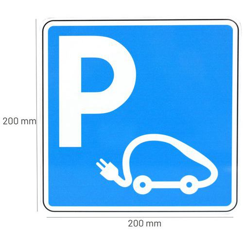 - Le fond bleu et le pictogramme universel permettent une identification rapide de l’emplacement de la borne de recharge.