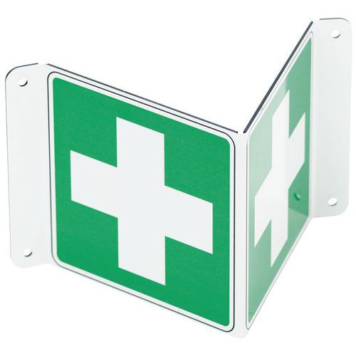 Panneau premiers secours double face V en aluminium - Manutan Expert