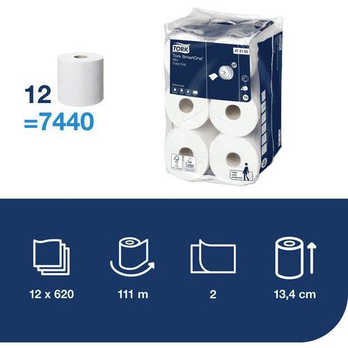 | Intitulé du produit | Papier toilette Tork rouleau feuille à feuille SmartOne, Nb de plis: 2, Coloris: Blanc, Type: Papier toilette |