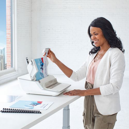 - Perforelieur Lyra™ 3-in-1 facile à utiliser pour relier, agrafer et perforer des documents.