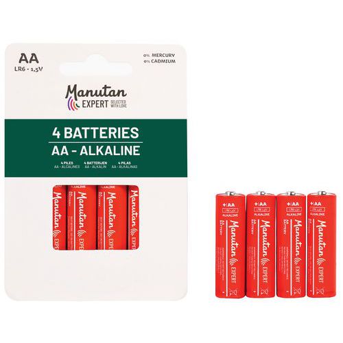 | Intitulé du produit | Pile alcaline AA/LR06, Type de pile: AA/LR6, Nb de piles: 4, Tension: 1.5 V |