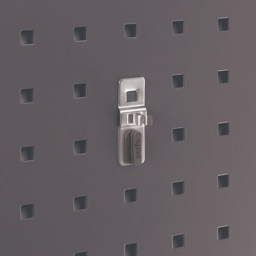 Accrochez vos outils en toute simplicité. Modèle robuste de 6 mm d'épaisseur. Accrochez simplement le support sur votre panneau. Fixez le support en un tournemain à l'aide des clips de sûreté en plastique.