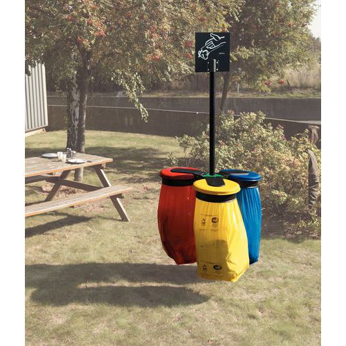 | Intitulé du produit | Piquet et socle pour porte-sacs, Matériau: Métal, Coloris: Gris, Hauteur: 90 cm, Modèle: 3 flux |
