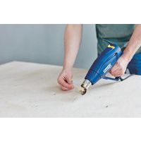 Pistolet air chaud possède 2 réglages de débit d'air, protection de poignée, base stable pour garantir un travail en position verticale avec les deux mains libres, coffret incluant 2 spatules et 4 buses.