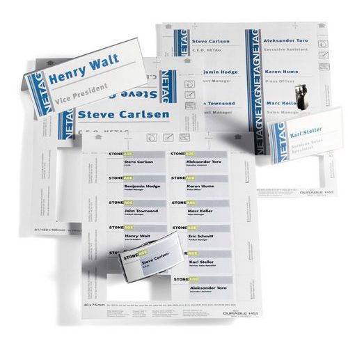 Planches prédécoupées aux dimensions des badges. Séparation simple et rapide des étiquettes grâce à des micro-perforations . Fabriqué en Allemagne