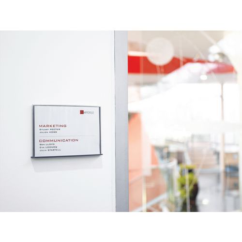 1 plaque, 3 fixations : à poser, au mur et en drapeau.