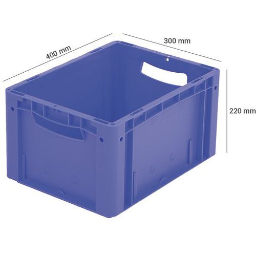 Bac norme Europe fond et parois pleins, Capacité: 21 L, Gerbable: oui, Hauteur hors tout: 220 mm Bac norme Europe fond et parois pleins, Capacité: 21 L, Gerbable: oui, Hauteur hors tout: 220 mm