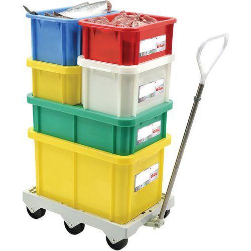 Bac gerbable avec couvercle conforme à la démarche HACCP concernant la conservation des denrées alimentaires. Marquage fiable et facilement effaçable grâce à son étiquette IML intégrée. Poignées en retrait pour une meilleure manipulation. Empilable sans couvercle. Design ne présentant aucune zone de rétention. Lavable en machine. Compatible avec tous les socles 4 et 6 roues Gilac.