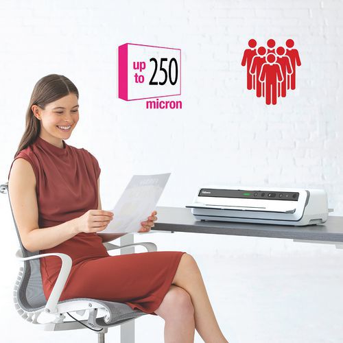 - Accepte toutes les pochettes jusqu’au format A3 et jusqu’à 250 microns.