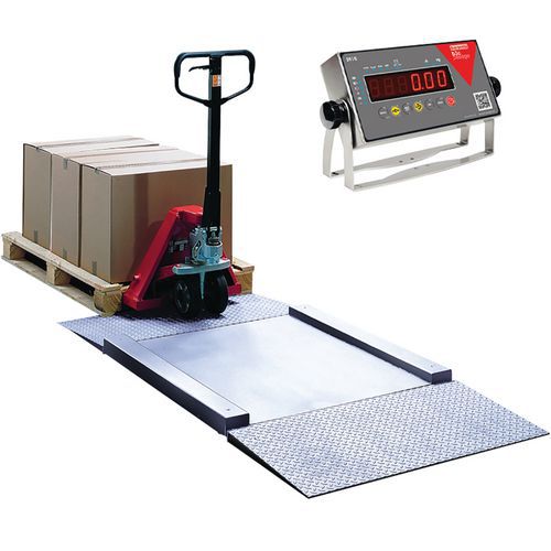 Plate-forme de pesage INOX + 2 rampes d'accès de 1500 et 3000 kg, Métrologie légale: oui, Portée: 1500 kg