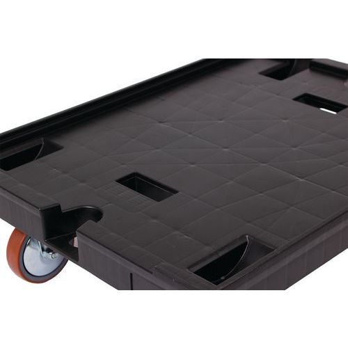 Avec encoches d'empilage sur le dessus du plateau pour empiler les supports roulants.