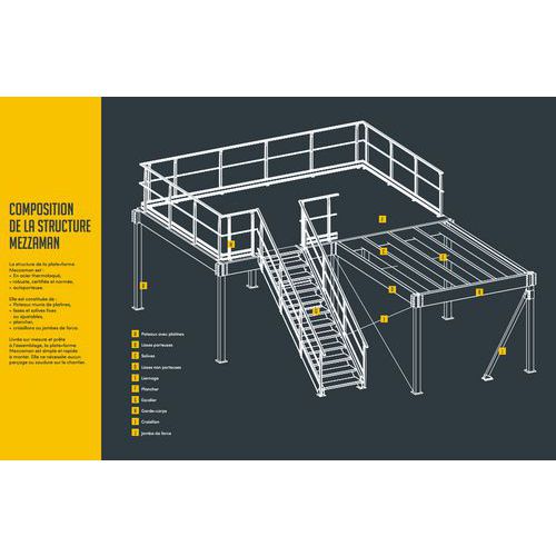 | Intitulé du produit | Plateforme de stockage industrielle à réaliser sur mesure, Hauteur: 3000 mm, Largeur: 4200 mm |