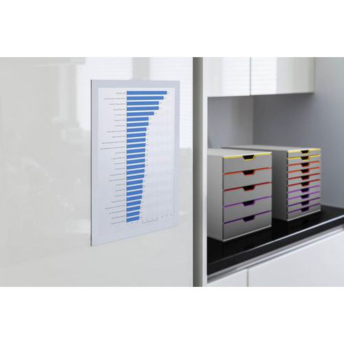 Actualisation simple et rapide, maintien des documents grâce à l'encadrement magnétique.