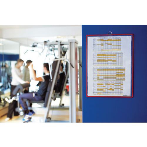 Pochette d'affichage à accrocher pour documents A3, orientation portrait. Cadre fil d'acier incassable TARIFOLD. Coloris attrayants permettant un affichage thématique. Surface transparente antireflets. Anse métallique chromée très résistante. pour fixation au mur. Solution pratique pour afficher et encadrer tout type de documents A3. Idéale pour l’affichage en entreprise, sur les points d’information, dans les lieux publics, les couloirs, les halls d’accueil. Pour l'affichage de documents permanents (horaires, réglements, sécurité, évacuation, instruction hygiène...)