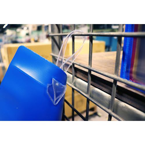 - Pochette d'identification logistique à suspendre avec lanière de taille unique s'adaptant à tous les formats de pochettes.